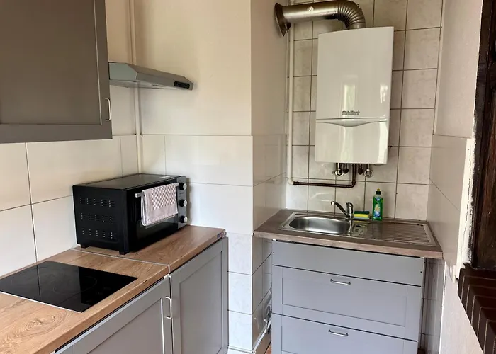 Modernes Appartement "Tom" Mit 3 Schlafzimmern lägenhet erbjuder utsikt över trädgården. Lägenheten erbjuder 1 sovrum. Gäster kan använda separat toalett och dusch.