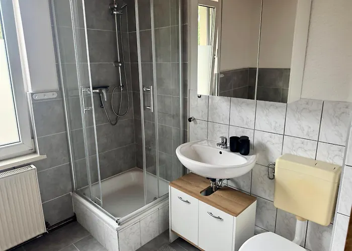 Modernes Appartement "Tom" Mit 3 Schlafzimmern lägenhet erbjuder ett komplett kök samt rum med te/kaffebryggare, sitthörna och satellit-TV. Halles stadsmuseum ligger 5 minuters bilresa bort, medan det tar 25 minuter med bil att nå Leipzig/Halle flygplats.